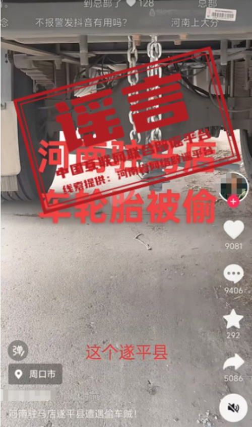 辟謠:網傳“貨車司機途經河南時備胎丟失”系謠言!