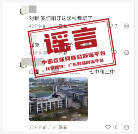 謠言:廣東陽江兩所中學(xué)教學(xué)樓因臺(tái)風(fēng)坍塌?